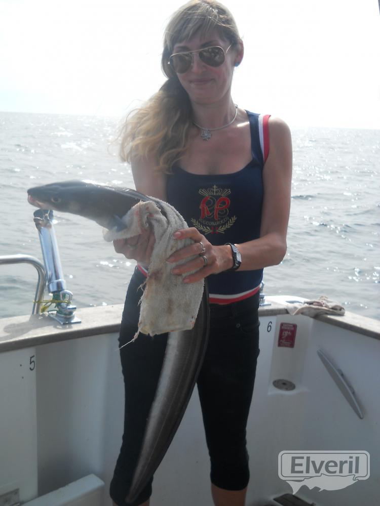 Devora con su congrio en el Maregalia 1º., enviado por: Devora en el Maregalia 1º con su congrio. (No registrado)