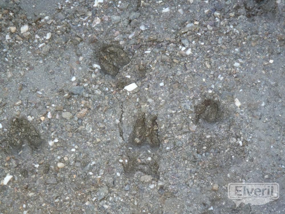 Descripción: Aunque son indistinguibles del europeo doy por hecho que son huellas de visón americano. Abundan en zonas del pantano y son faciles de ver por las mañanas las huellas frescas de los campeos nocturnos de estas alimañas. A tiros con ellos.